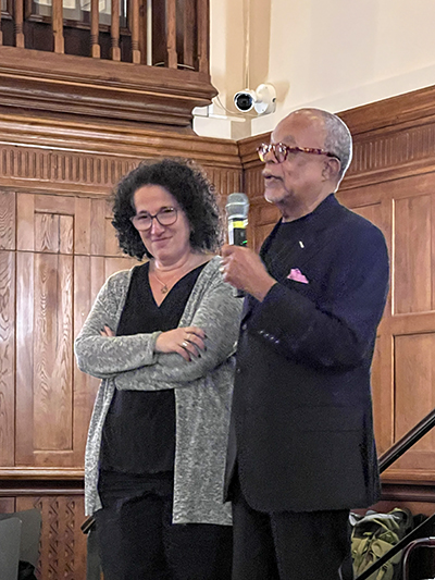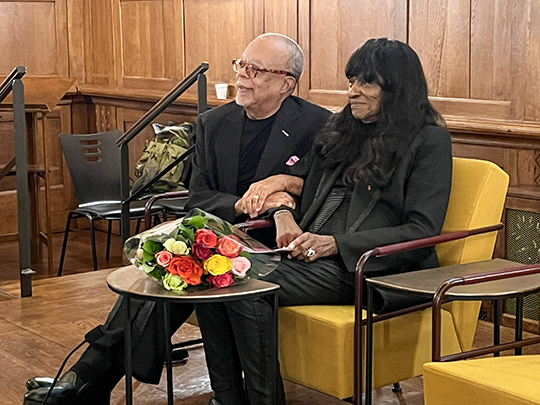 Finally, Professor Gates presented Chase-Riboud with a bouquet of roses, delivered his closing remarks—including thanking Hutchins' executive director, Dr. Abby Wolf, for her role in organizing the conference—and posed for a photo with Chase-Riboud.