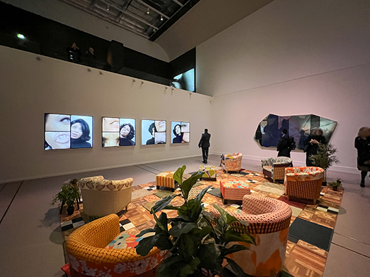 Three of those works—two collages and a film installation—are on display at All About Love in a dedicated room called Avec Monet.