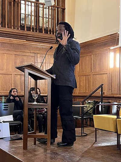 James shared his personal thoughts on exile from his vantage point as a Jamaican who expatriated to the U.S. He then read Baldwin's essay "Stranger in the Village."