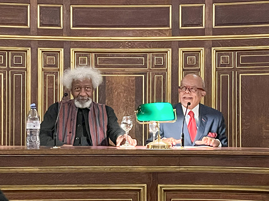 Moderated by Yale University professor Kaiama L. Glover, it featured an opening statement by Sorbonne Nouvelle President Daniel Mouchard-Zay, followed by a scintillating conversation between Professor Henry Louis Gates, Jr., Director of the Hutchins Center, and 1986 Nobel Laureate Wole Soyinka.