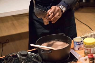I was surprised to learn that the classic preparation for Antillean hot chocolate begins with infusing water with cinnamon sticks and grated nutmeg and includes lime zest. I was even more surprised to hear Chef Artigny state that he adds peanut butter when he prepares his personal recipe!
