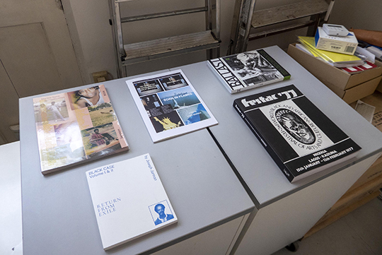 In addition, Galerie Transplantation is developing a Transplantation Library, which centers on the distribution of printed objects, consultation of archives, education regarding critical thinking, and access to a pan-African and global visual heritage. English-language and French-language publications are available for consultation and purchase.