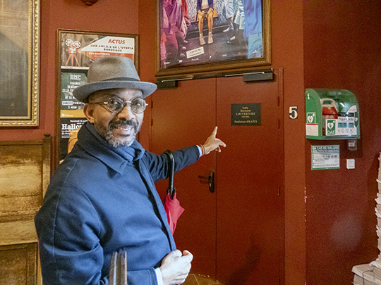 Diallo told us about the fresco by Jean-Baptiste-Claude Robin that has decorated the ceiling of the performance hall since 1777. Among the representations is an allegory of the City of Bordeaux—a woman at whose feet lie the riches of the city, which are portrayed as wine (grapes), ships, and enslaved Black people.