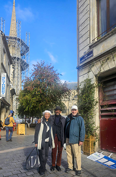 Monique Y. Wells, Karfu Diallo, and Tom Reeves near Saint-Michel Basilica